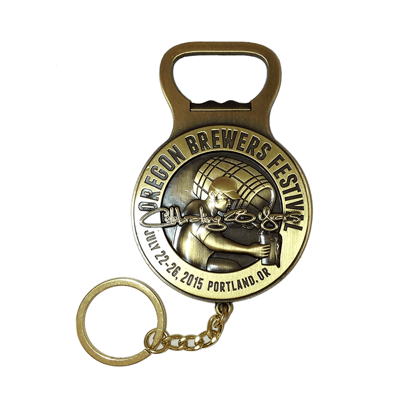 Depending on the direction you choose (either a stock item OR a totally custom opener), your design is printed or laser engraved onto an existing opener, in a stock color and shape OR it is molded into the product using a diestriking or casting technique, plated in your choice of metal, and colored with filled enamel or printing. Your sales rep will be sure advise what’s most appropriate for your design, deadline and budget.
