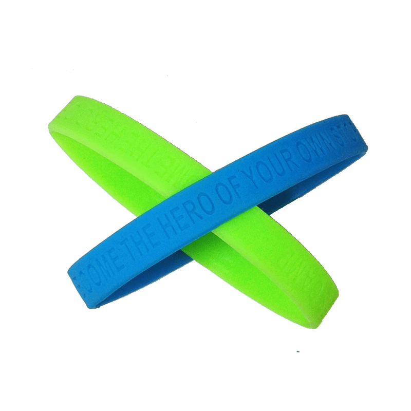 We use 100% high quality silicone materials to create our wristbands and bracelets. Once we know what design or combination of styles you’ve chosen, we create a mold to form your wristband. Our silicone bracelet options include traditional embossed or printed, as well as, embossed with color filling, multicolored bracelets, specialty and custom designed shapes, special sizes, premade, in stock bands, and even glitter options!