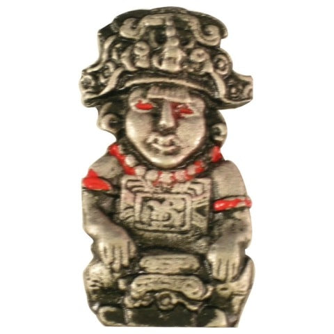 A intricately detailed Aztec warrior cast lapel pin with red enameled highlights. The Aztec warrior represents discipline, honor and supremeness on the battlefield. Honor the people in your life who have persevered while displaying discipline and honor throughout their struggle.