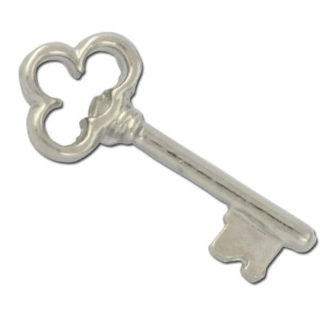 Skeleton Key with clover top lapel pin. The clover leaf top of this key is symbolic of the Holy Trinity, Irish pride, and good luck. Christian book stores, St. Patrick's Day parades, and anyone embarking on a new chapter of their life will appreciate this sentimental gift.