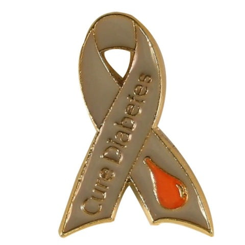 Cure Diabetes Awareness Ribbon lapel pin with gray and orange enamel. Our Cure diabetes awareness ribbon lapel pin helps spread the word about diabetes and is priced for fundraising purposes and charity events. November is American Diabetes Month and Diabetic Eye Disease Month.