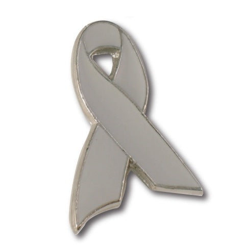 This gray awareness ribbon lapel pin is widely recognized as the symbol for brain cancer awareness, substance abuse/addiction awareness, and diabetes awareness. It is an outward symbol for their cause worn by patients, survivors, families, doctors, nurses, and other support staff; many of them obtained through benefits, fund-raisers, and memorials.