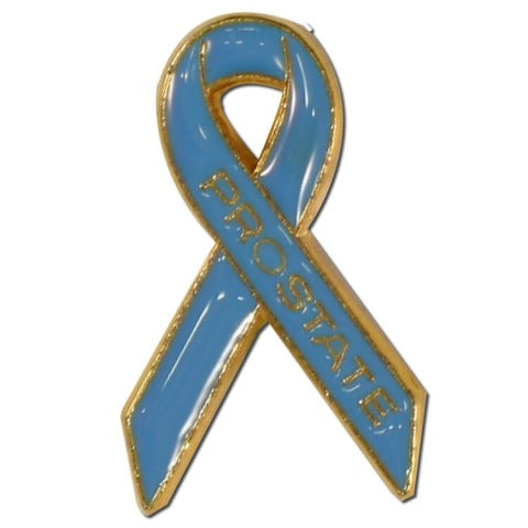 Blue enameled prostate cancer awareness ribbon lapel pin. This blue awareness ribbon lapel pin shows your support for prostrate cancer research and funding. It is worn by patients, survivors, families, doctors, nurses, and other support staff. Great for benefits, fund-raisers, and memorials. Support prostate cancer awareness and research.