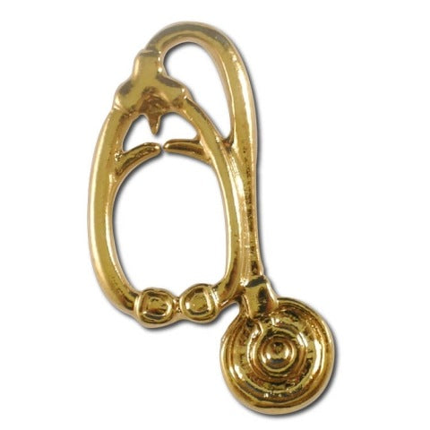 Stethoscope lapel pin in bright gold finish. Worn most commonly by doctors and nurses this lapel pin would also be appropriate for EMTs.