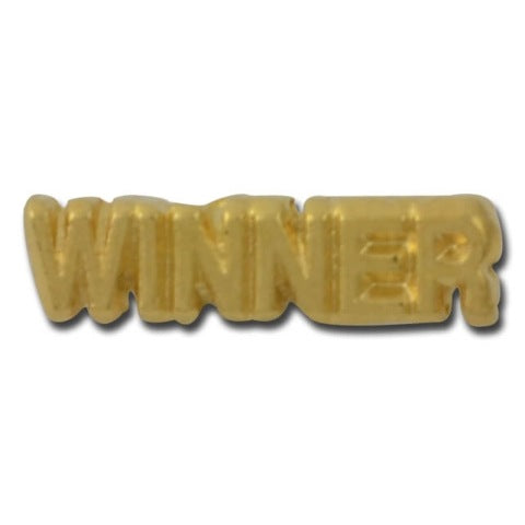 Cut out letter WINNER lapel pin. A first place finisher or someone who meets their goals in life would enjoy this pin recognizing their achievement.